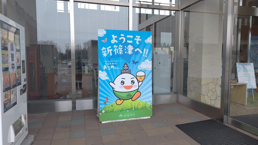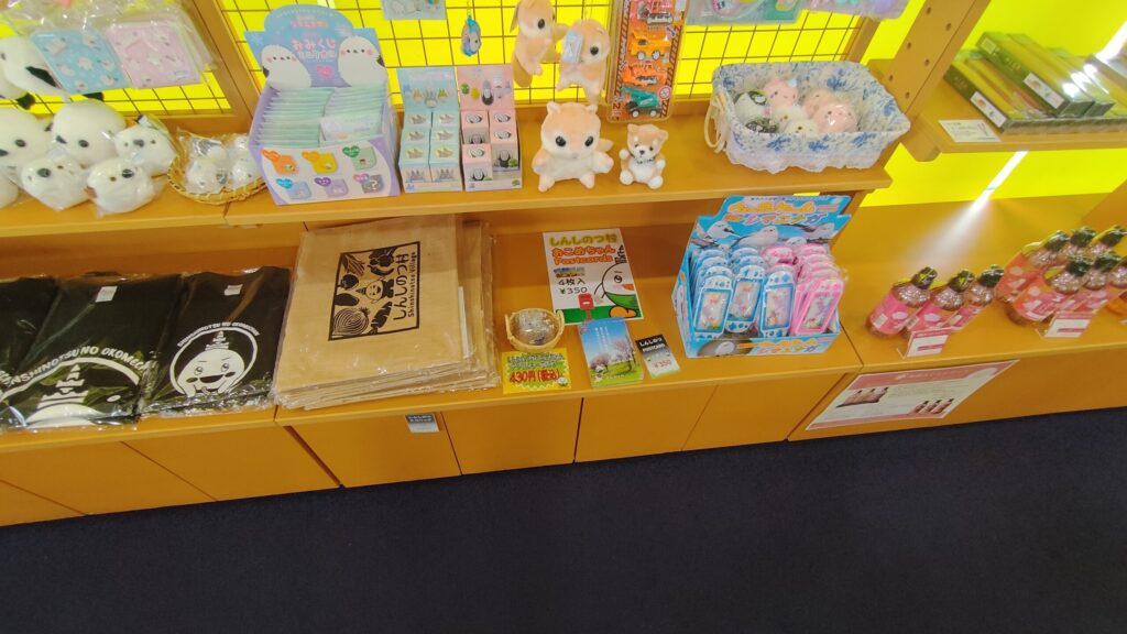 施設内には小さなお土産コーナーがあり、道の駅のマグネットや、新篠津のイメージキャラクターがプリントされたシャツなどが販売されています。