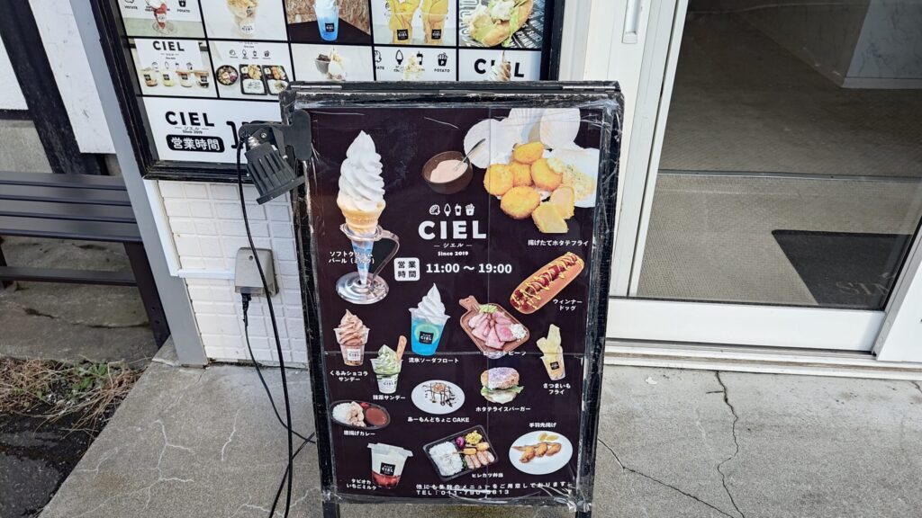 カフェCIELは、東8丁目篠路通沿いにある人気のカフェで、ソフトクリームだけでなく「ホタテ料理」でも評判を集めています。