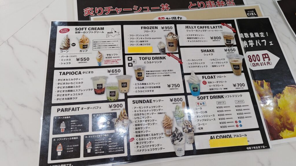支払いは店頭での現金払い。メニューを見てみると、目を引く「世界一のソフトクリーム」の文字が!