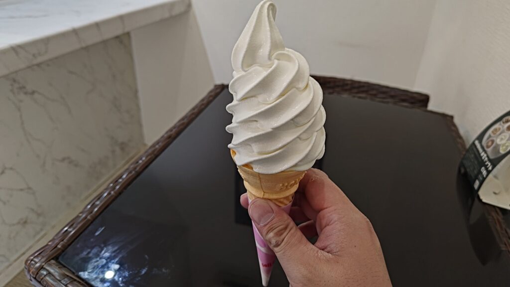 注文して出てきたのは、真っ白できれいなフォルムのソフトクリーム。