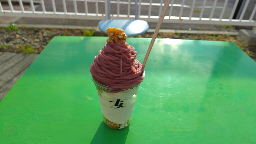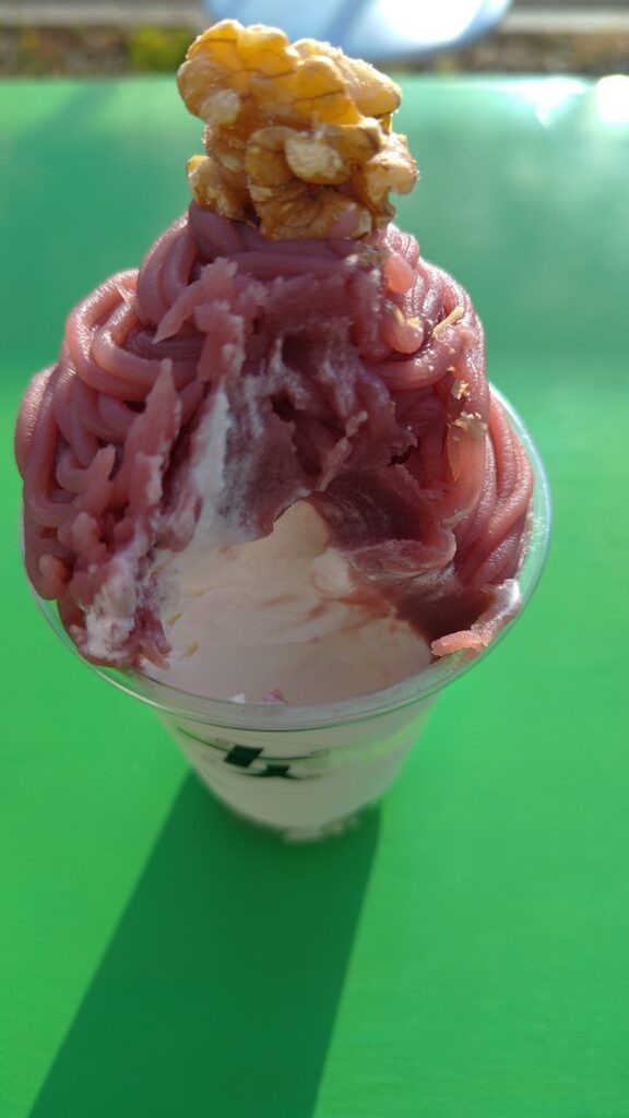 その下のソフトクリームはあっさりとしたミルク味で、モンブランの甘さを程よく引き立ててくれます。
