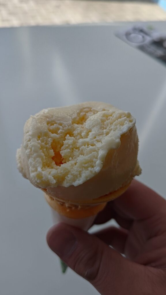 ちなみにコーンの上にアイスが乗っているタイプなので、コーンの先までクリームが入っているわけではありません。