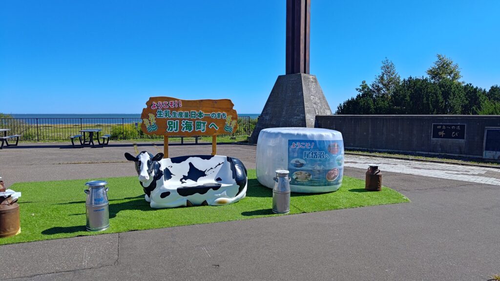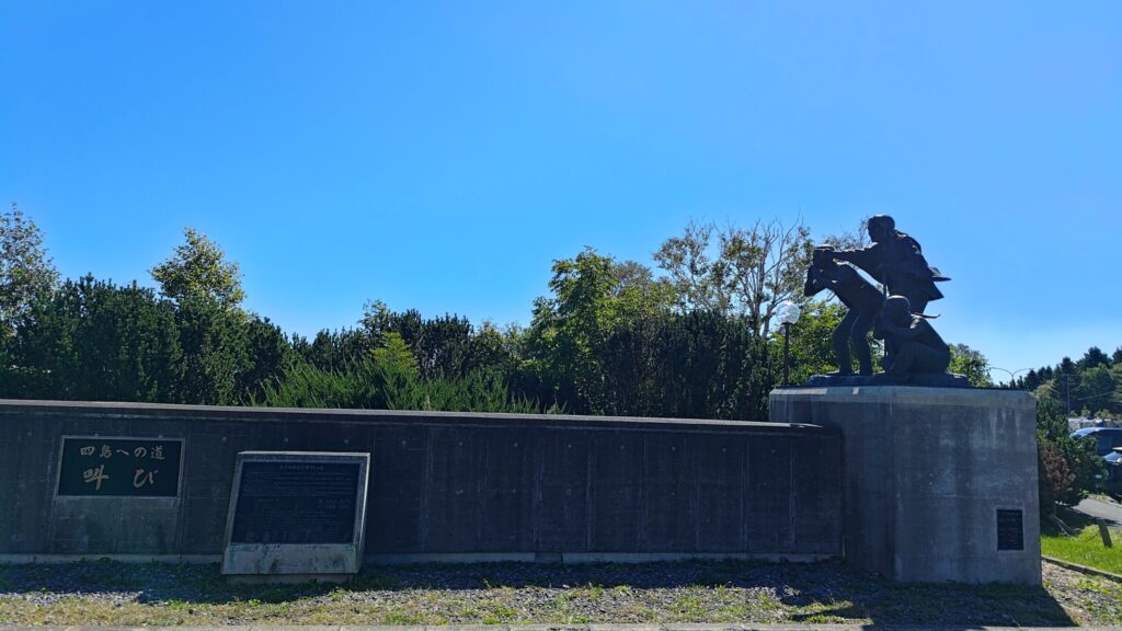 屋外には牛をモチーフにしたユニークなモニュメントがあり、座って写真を撮ることもできます。また、敷地内には「叫びの像」と呼ばれる像も設置されていて、これは北方領土の返還を訴え、島々に向かって叫ぶ人々の姿をかたどったものだそう。