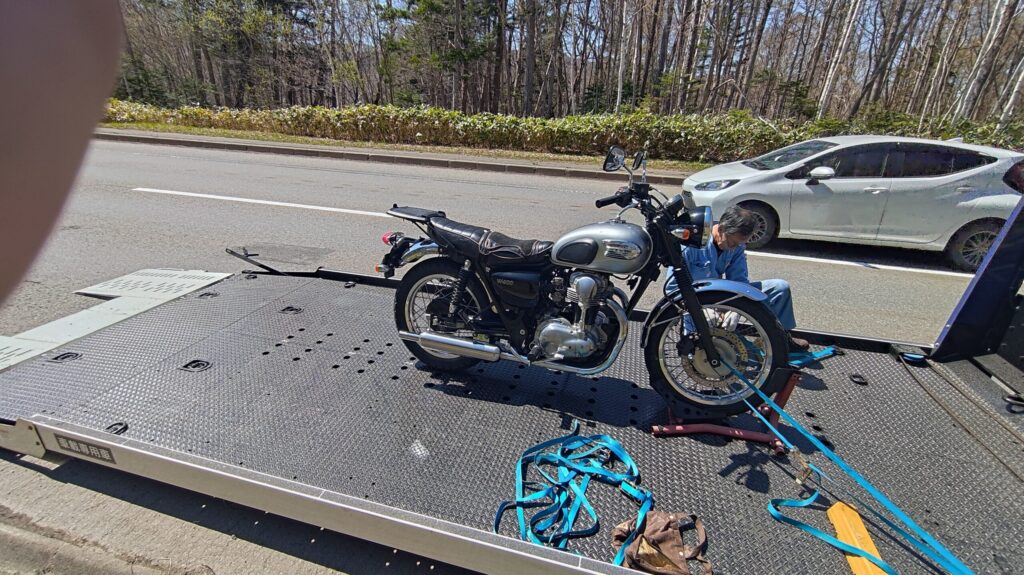 今まで何度か見たことはありましたが、自分のバイクが載る側になるとは思っていませんでした…。